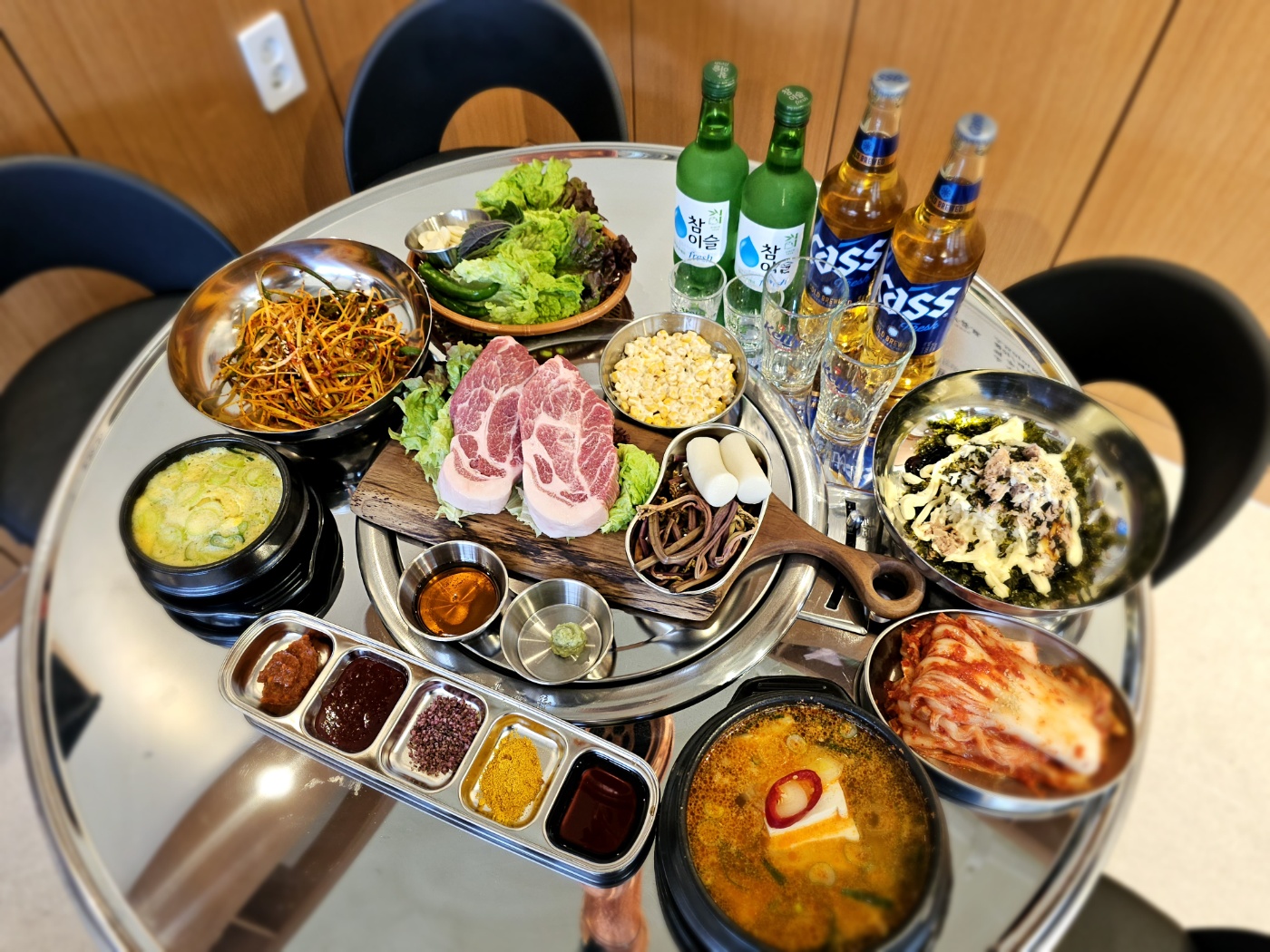 “”김치찌개 전골과 함께하는 소주 한잔””
