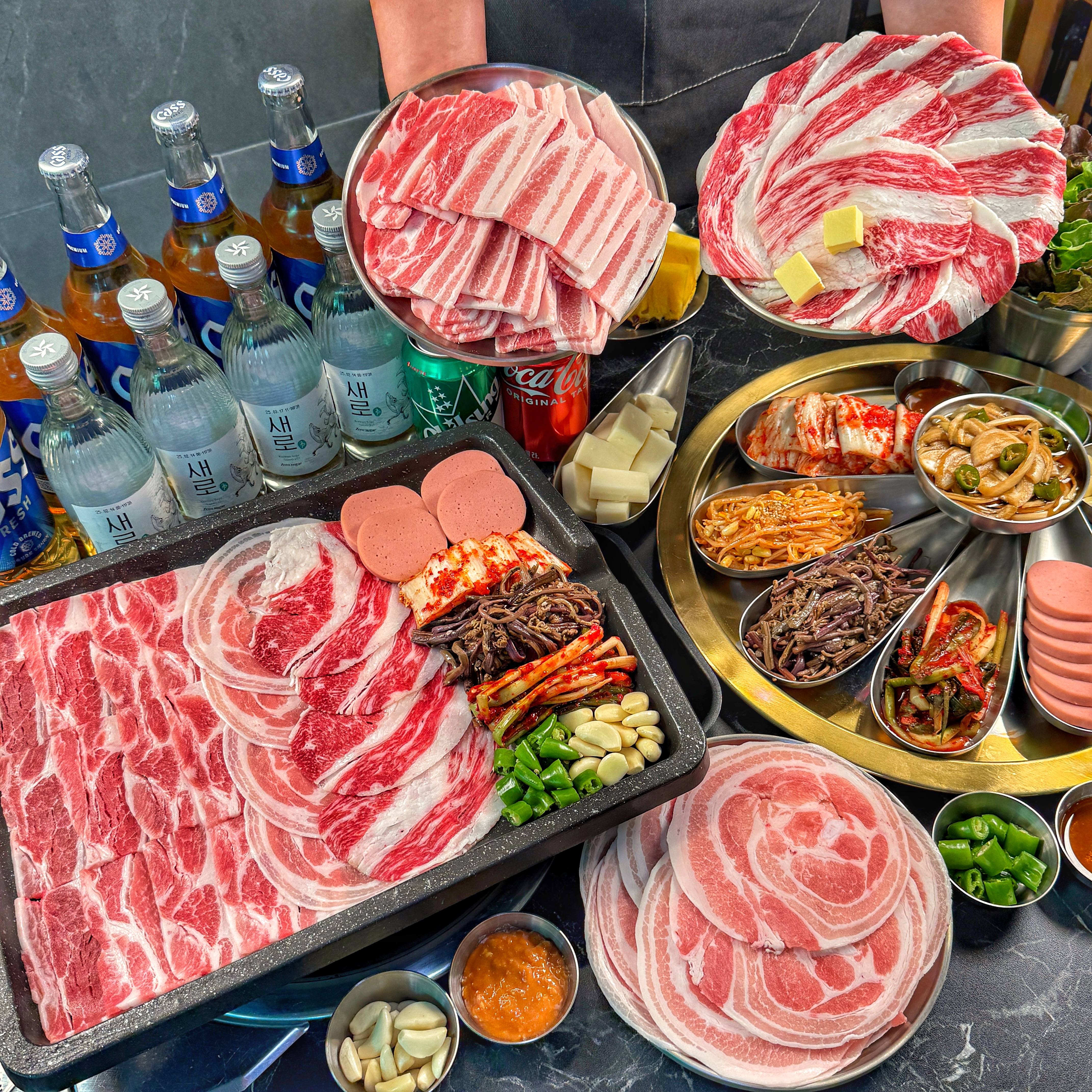 양념게장 미니 9,000 | 점심예약가능)평일단체 변동가격(업주문의) | 급냉삼겹살 150g보성녹돈1등급 13,900 | 급냉암돼지 꽃삼겹 150g 국내산 14,900 | 투뿔 한우차돌 NO9 150g 23,900 | (신메뉴) 황지살 17,900 | 가니쉬세트 관자5p+치즈5p 8,000 | 구워먹는치즈 10p 9,000 | 가리비 관자(7p) 6,000 | 물냉면 6,000 | 비빔냉면 6,000 | 된장찌개 5,000 | 돼지찌게 5,000 | 산토리하이볼 7,000 | 하이네캔 생맥주 7,000 | 공기밥 1,500 | 펩시제로 생 5,000 | 추가 파인애플 4,000